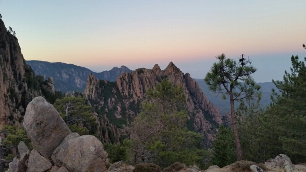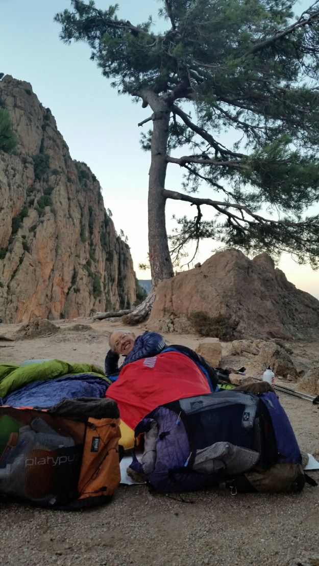 It was so nice nice to sleep in the trees away from a bunch of people. As we walked down the road we discussed our options and the answer magically appeared….. a trail directly back to the GR20. And the quality of the trail was the best we have walked on. It took an hour to walk to the bottom of the ravine and back up. We immediately saw people who had left the refuge 3 hours prior. The wind never died down last night and they hardly slept at all.