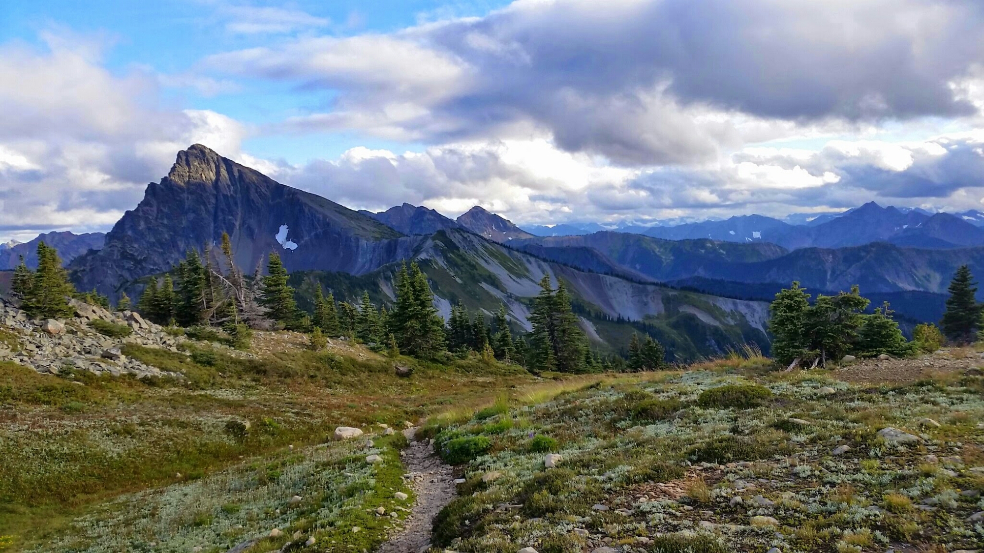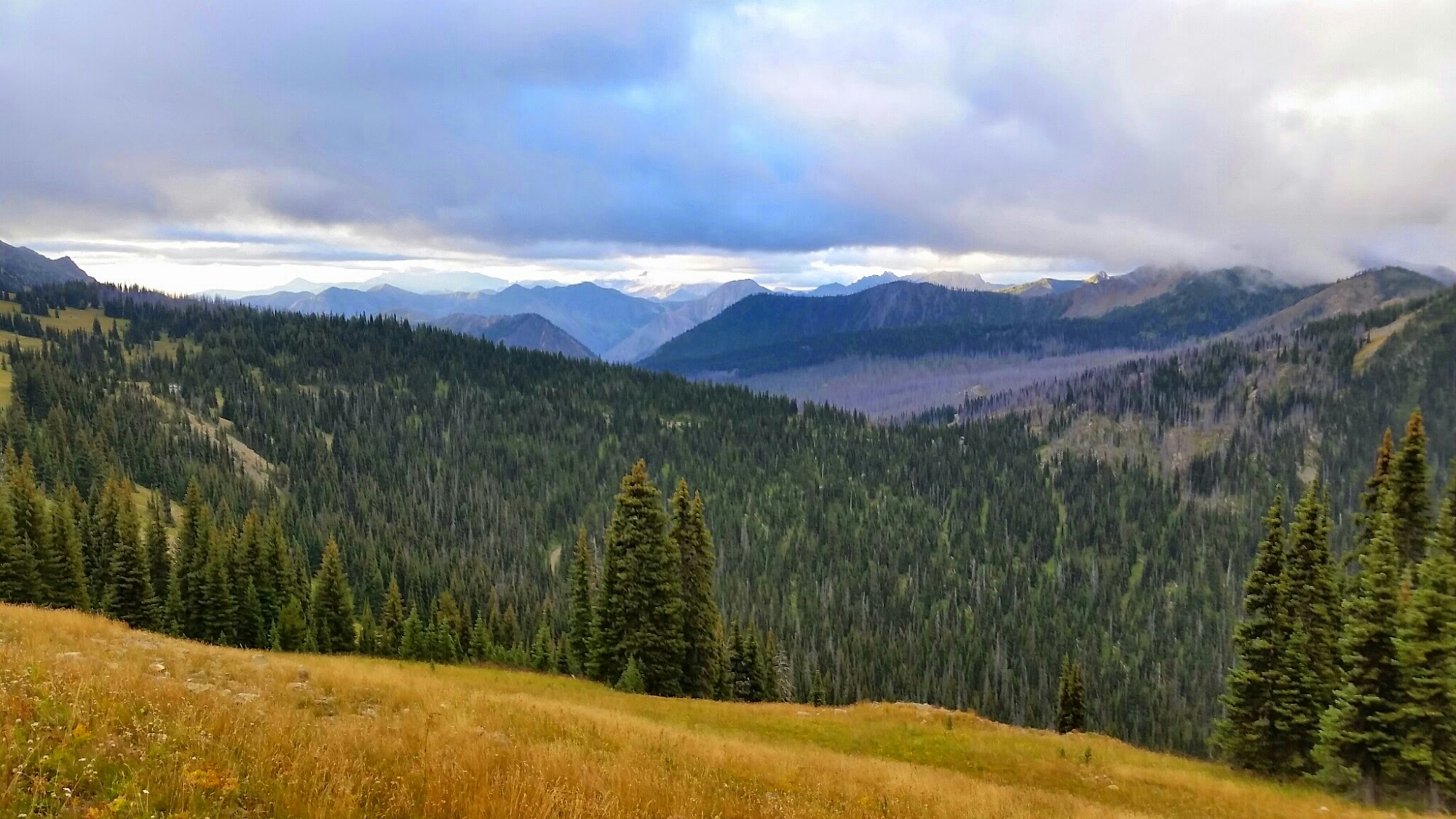 Well, we didn’t get the clear views I had hoped for. Low clouds this morning prevented us from seeing very far. It did clear up some later and the sun came out for brief moments. Most of the day was cool to cold. Actually perfect for hiking. I spent much of the day looking for heart rocks and huckleberries. I found lots of both.