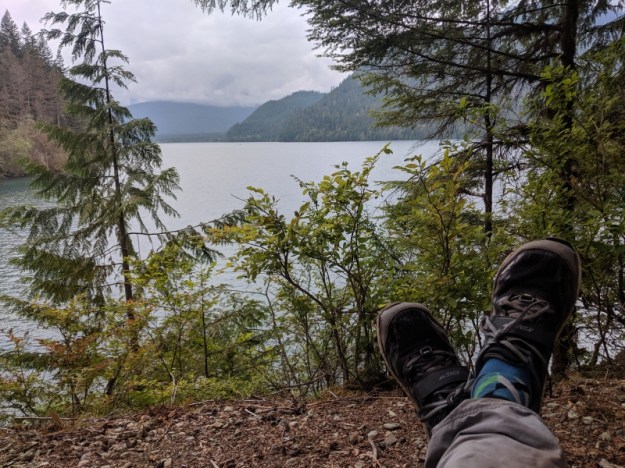 It was a nice walk along the lake. I passed by old growth cedar trees and stumps. No views of mountains this time but it’s a relatively easy area to return to.