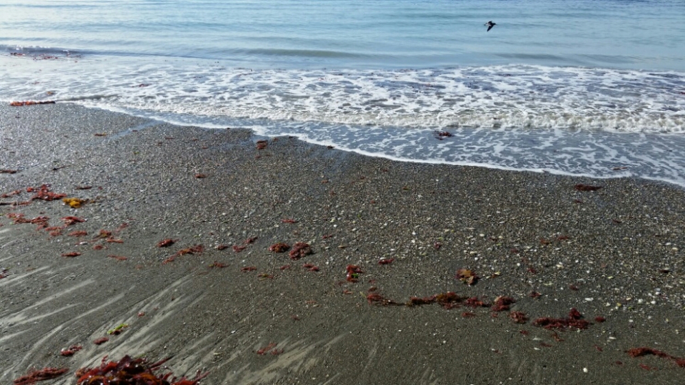 The first 23 kilometers of today’s walk was on the beach. In the middle there is a stream that flows into the ocean. This is best crossed at low tide. Plus beach walking at low tide is so much easier than at high tide. The tides were such that leaving at 10am was perfect. So I was forced to have a relaxed morning. Nice.
