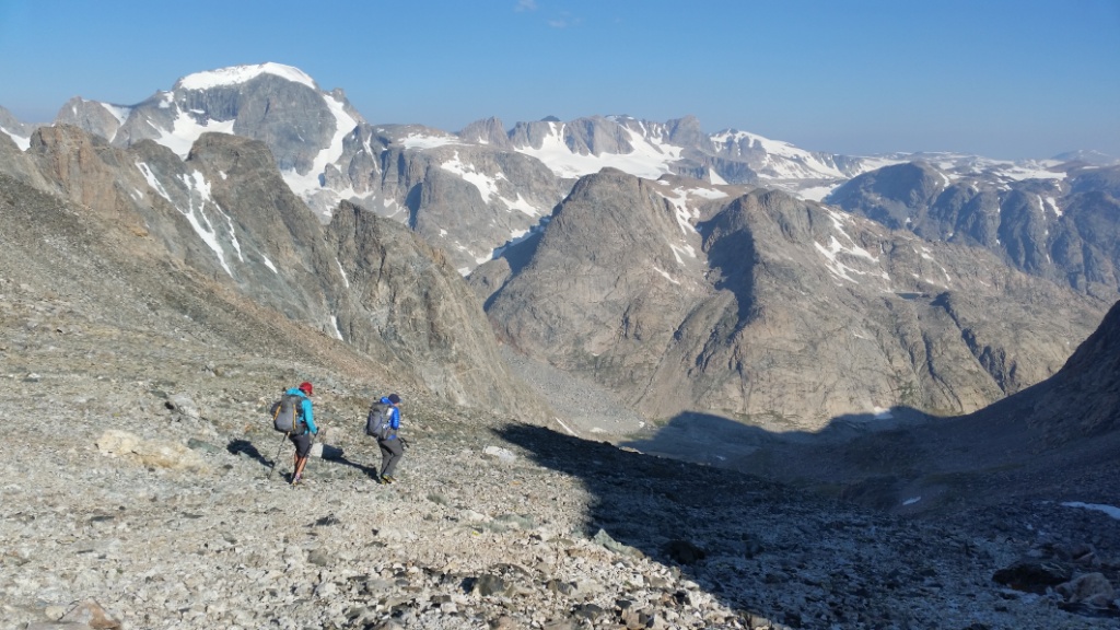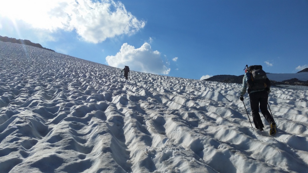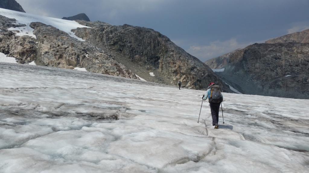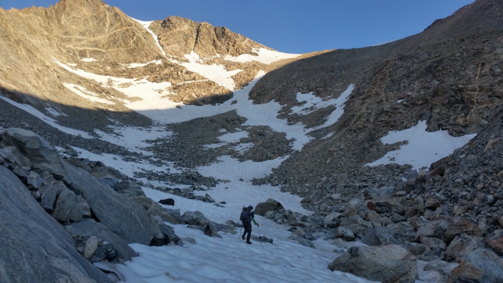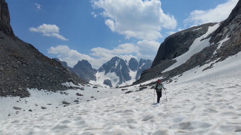 So many steep climbs today! Blaurock Pass, Sentinel Pass, plus several unnamed ones. We had lots of snow walking and used microspikes.