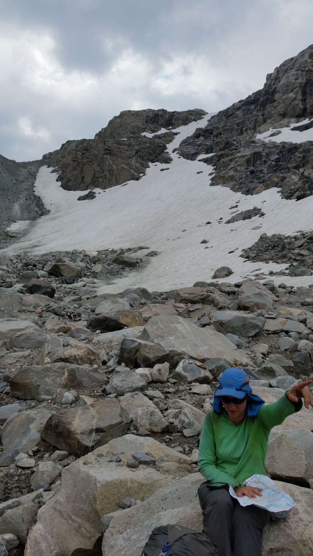 Just before Blaurock Pass to Iceberg Lake Pass.