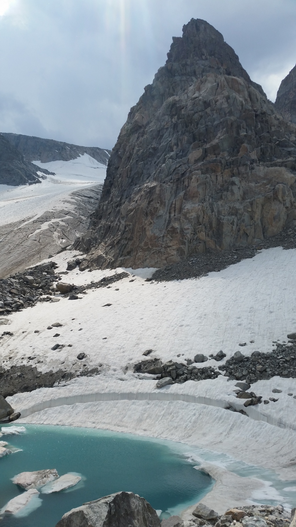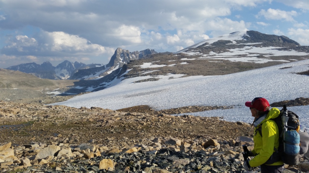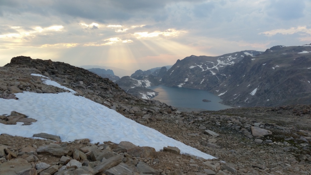 Just after we passed this tarn it started raining for the first time since we’ve been in the Winds. Dry weather is not normal. We have been lucky. The rain stopped after 10 minutes.